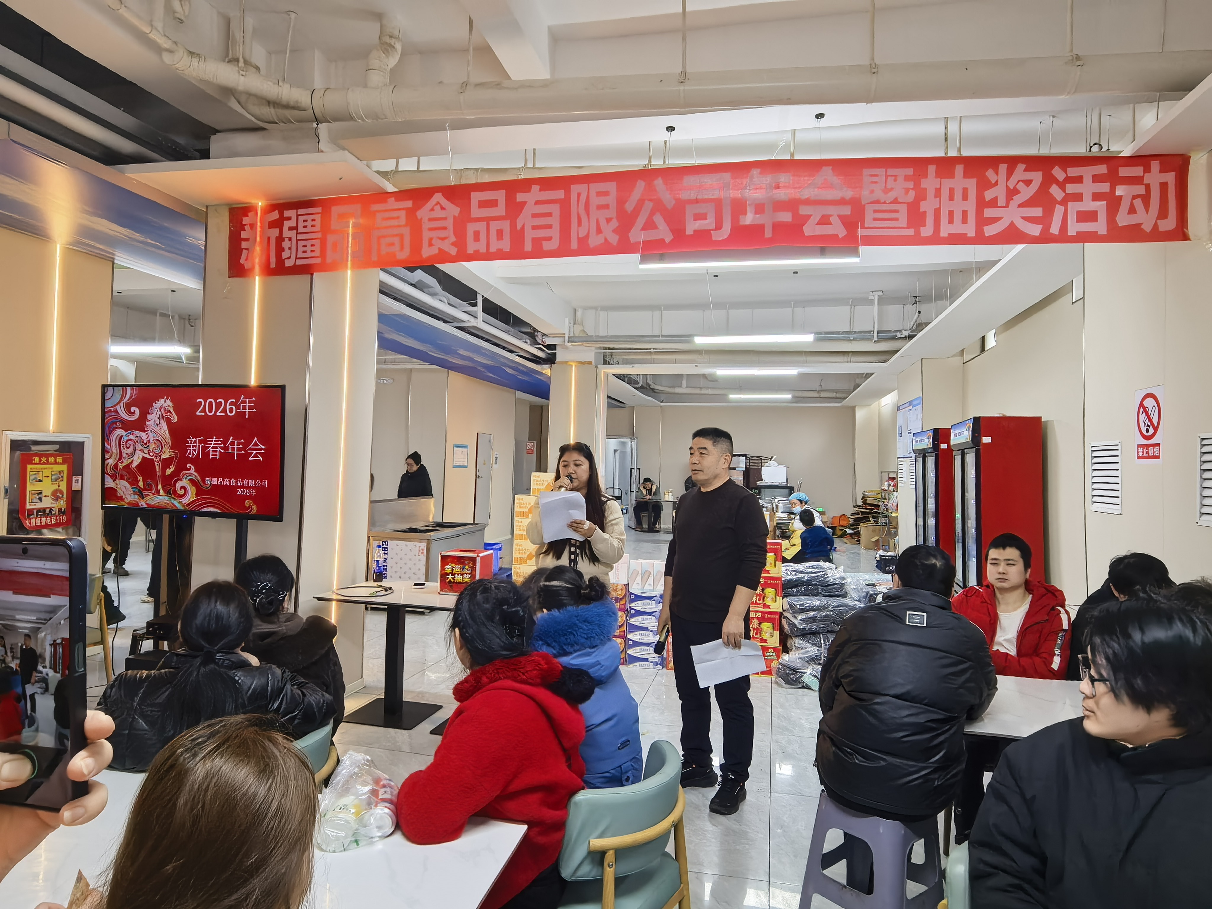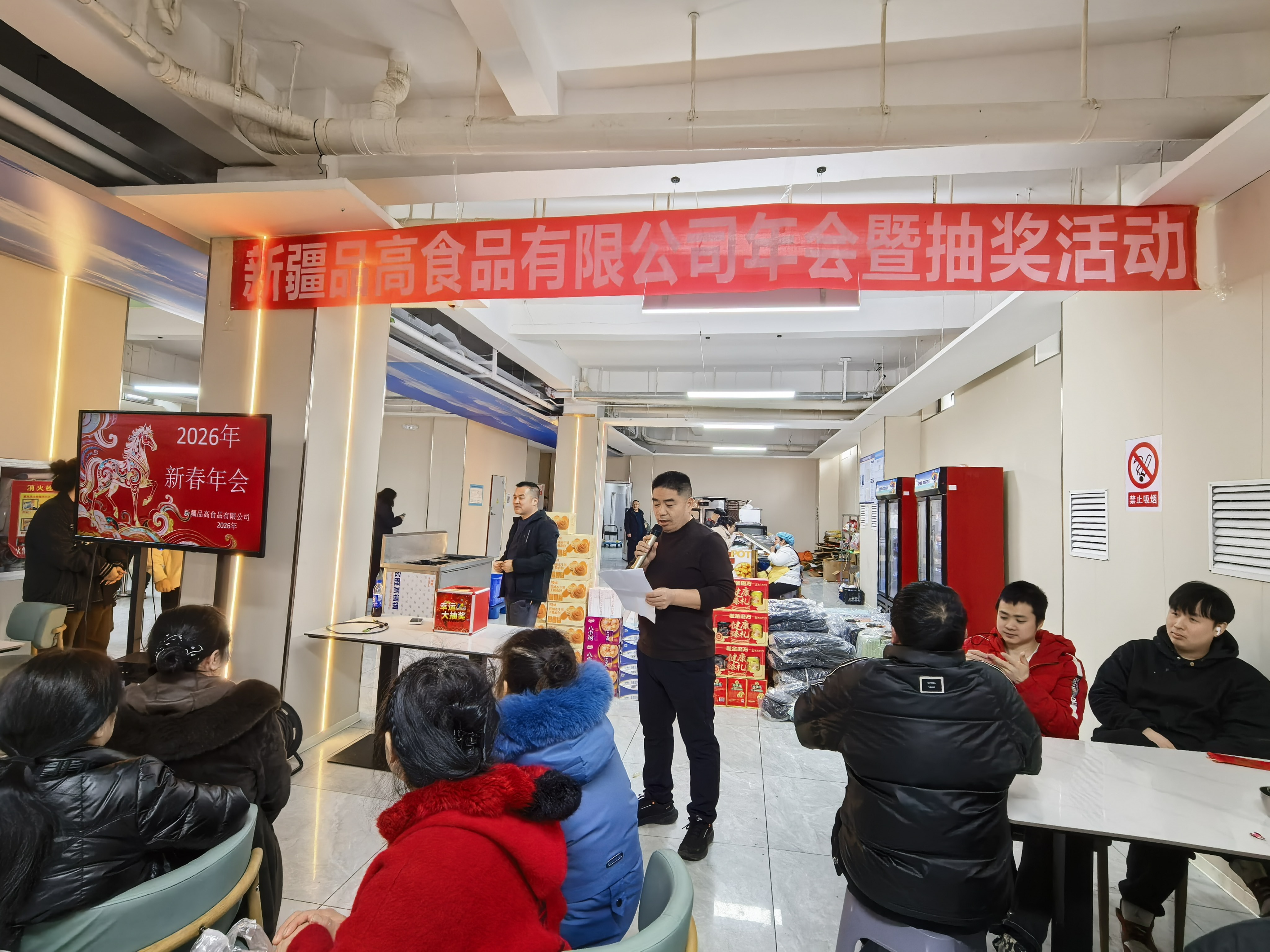 活动伊始,主持人热情登场,向到场的各位领导、全体同事致以诚挚的问候与新春祝福。主持人回顾了过去一年里,公司与全体员工携手并肩、同心逐梦的奋斗历程,感恩每一位员工在岗位上恪尽职守、锐意进取,以实干与担当推动公司稳步发展,共同收获了成长与累累硕果。为感谢全体同仁的辛勤付出,公司精心筹备了现金红包、丰厚奖品与趣味互动环节,让寒冬之夜充满温暖与惊喜。