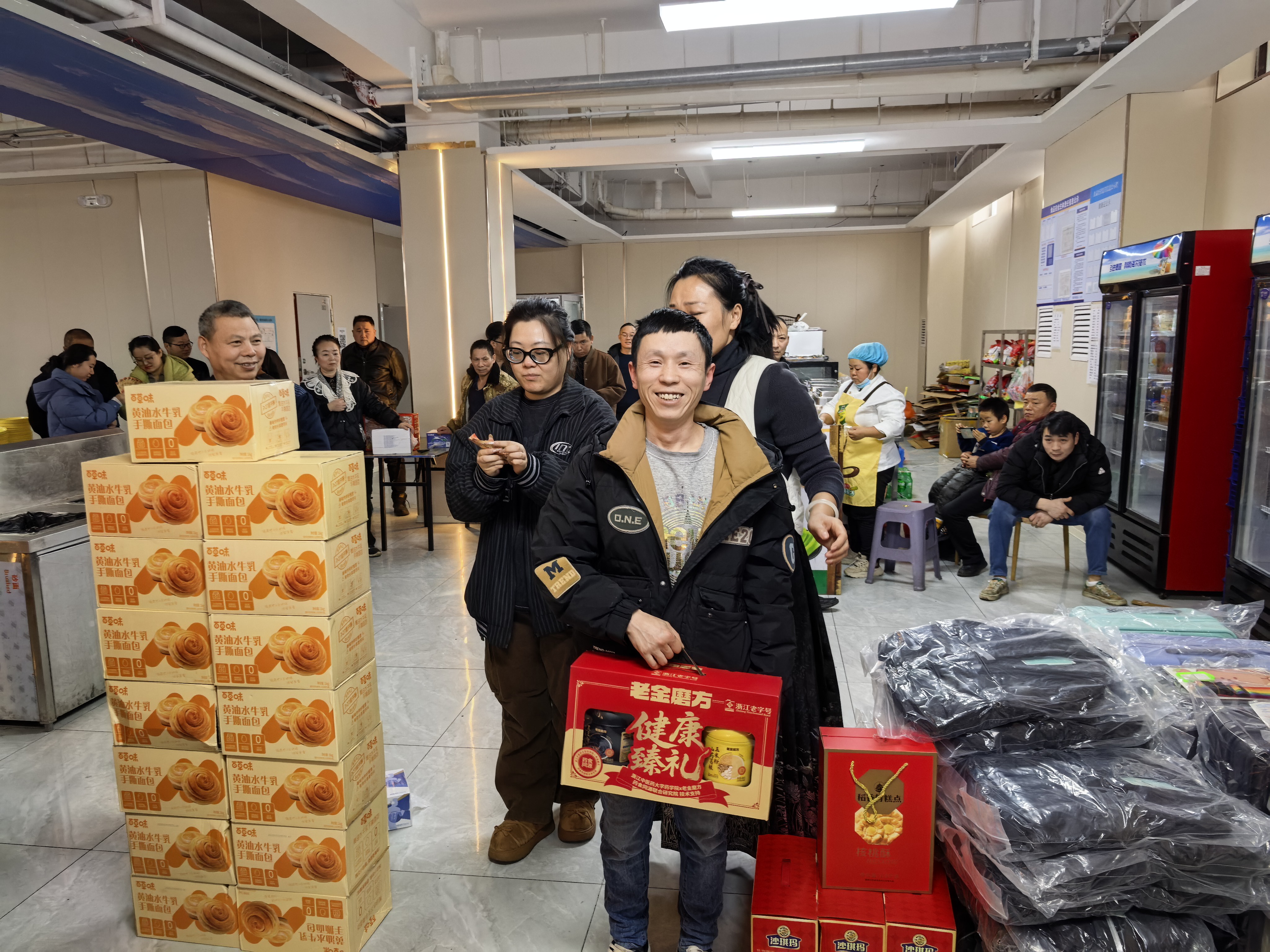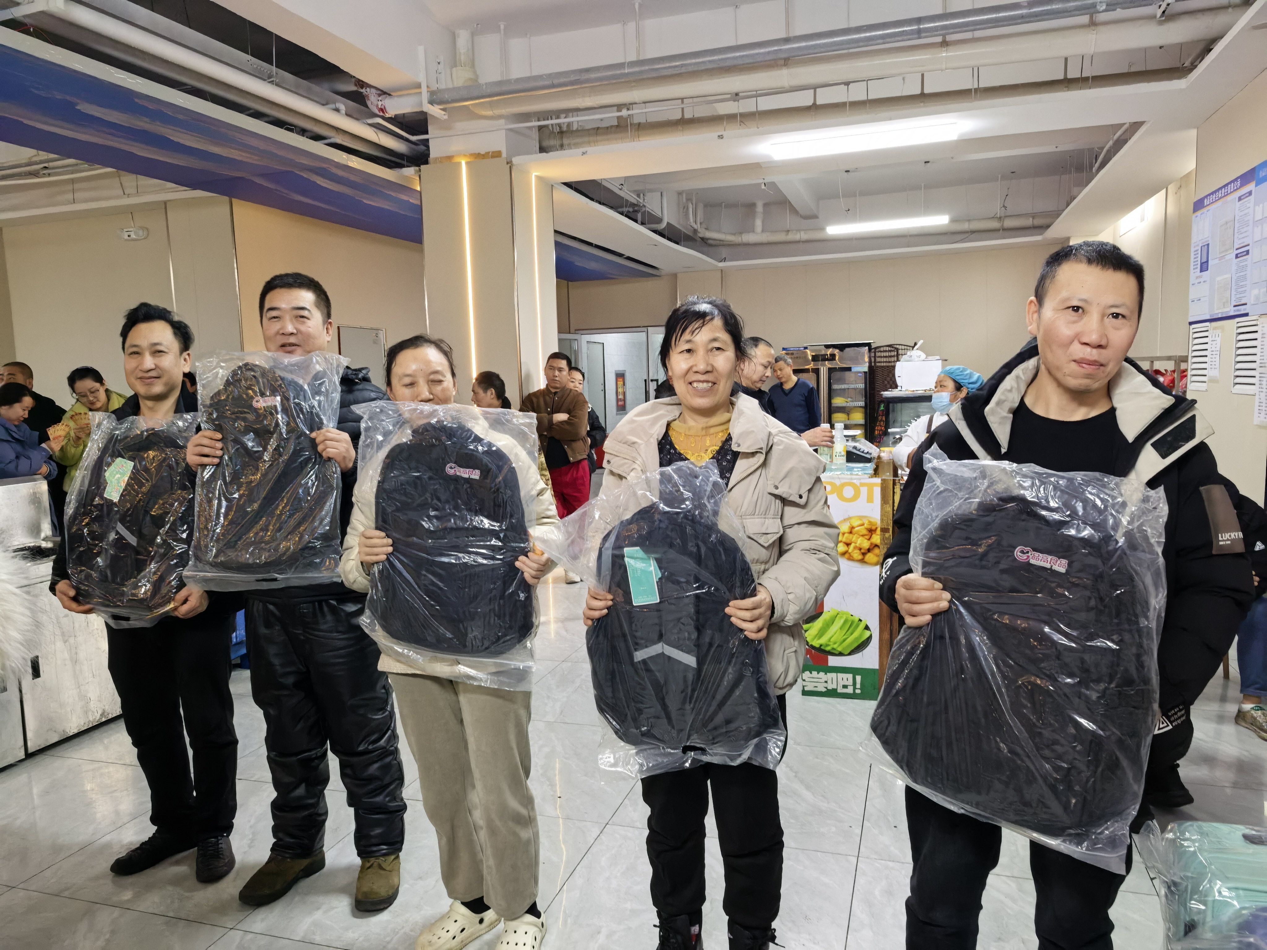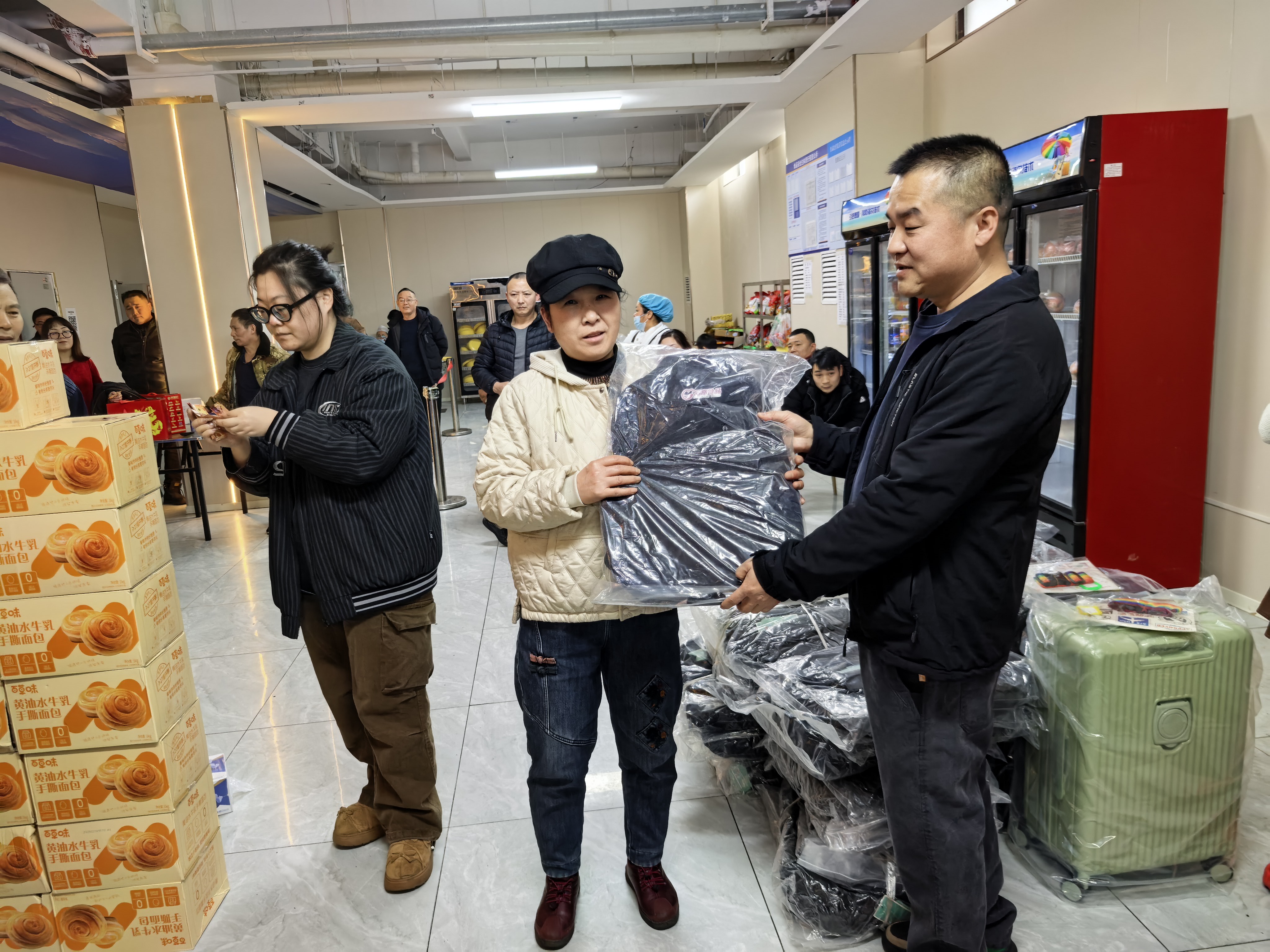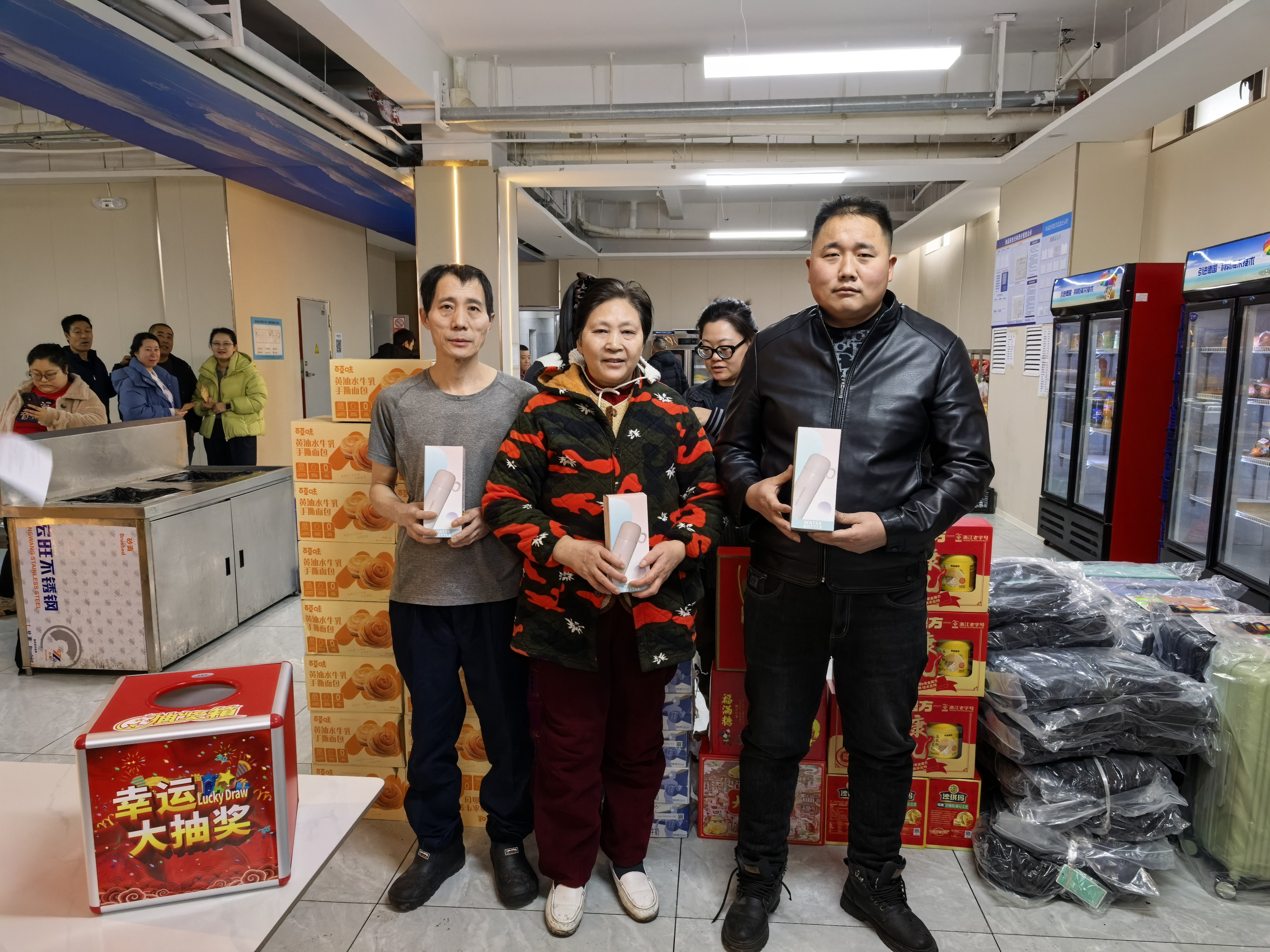 本次抽奖奖项丰厚、品类多样,覆盖全体员工,真正实现人人有礼、喜乐共享:三等奖为实用保温杯,为冬日增添温暖;二等奖为各类精选礼盒,包含美味食品与暖心好物;一等奖为时尚双肩书包,兼顾通勤与出行实用需求;特等奖为 24 寸可扩容时尚皮箱,承载美好期许与全新梦想。除此之外,未抽中奖项的员工均可领取专属手撕面包,让每一位同仁都满载而归、不虚此行。
