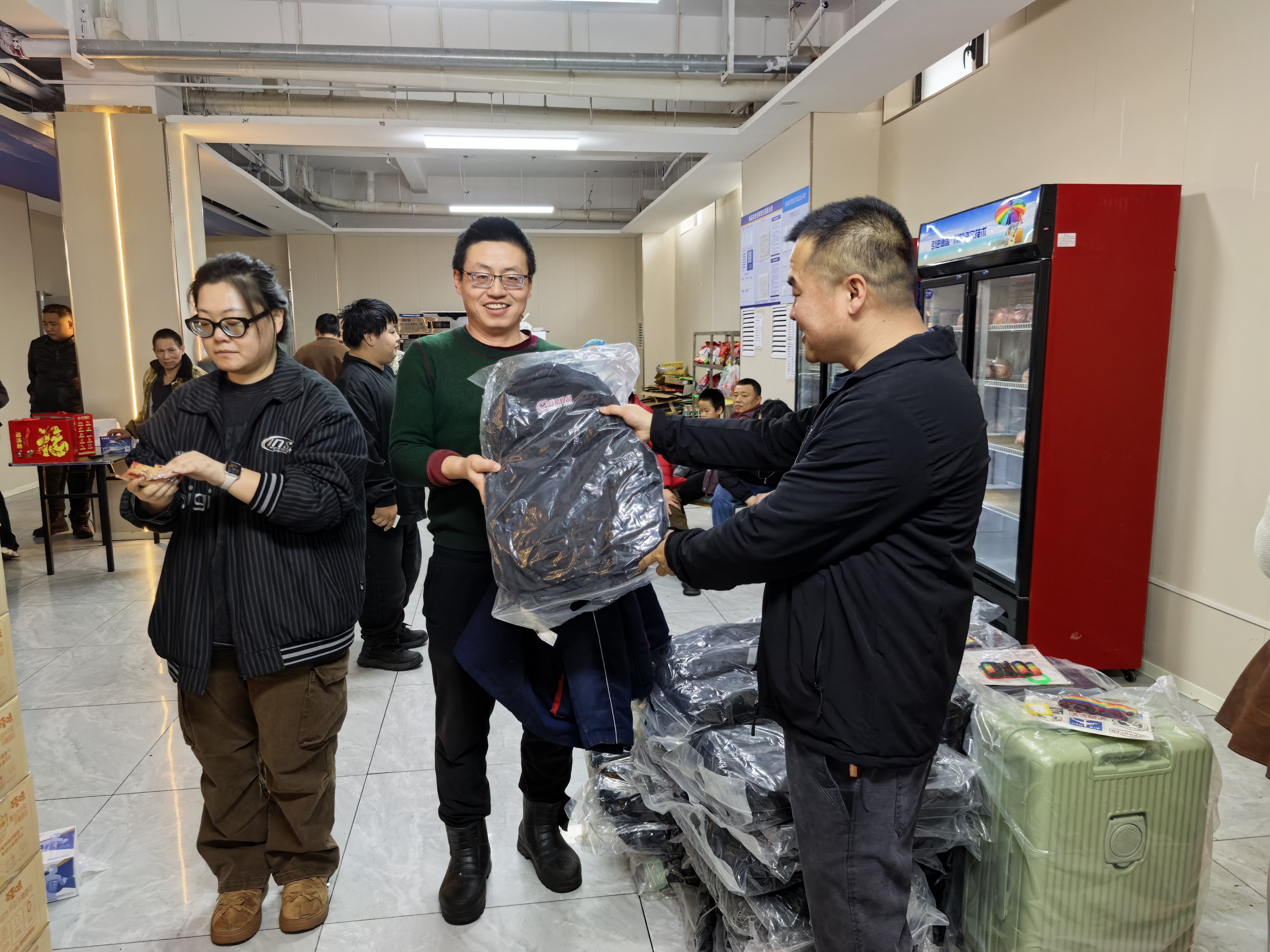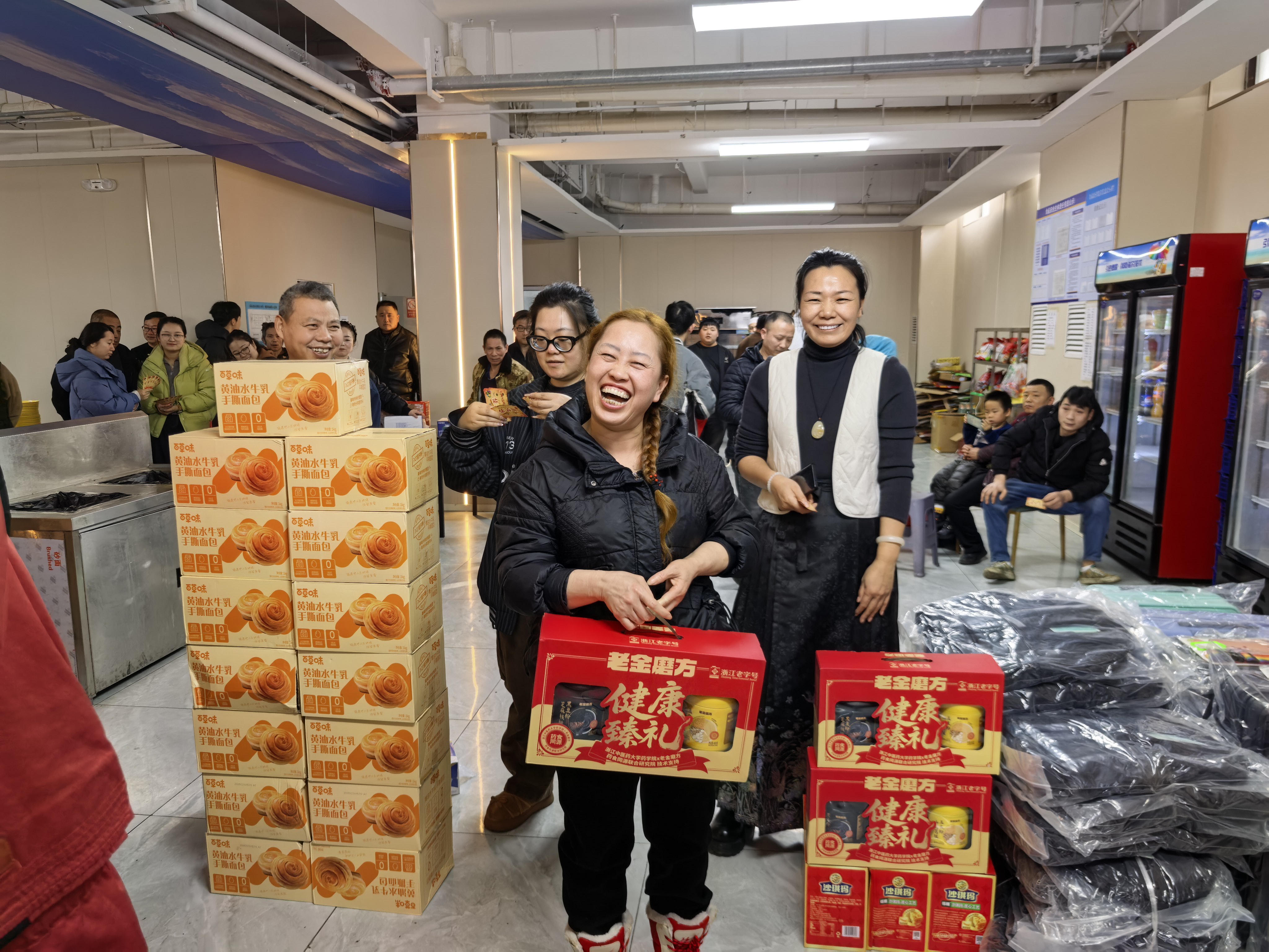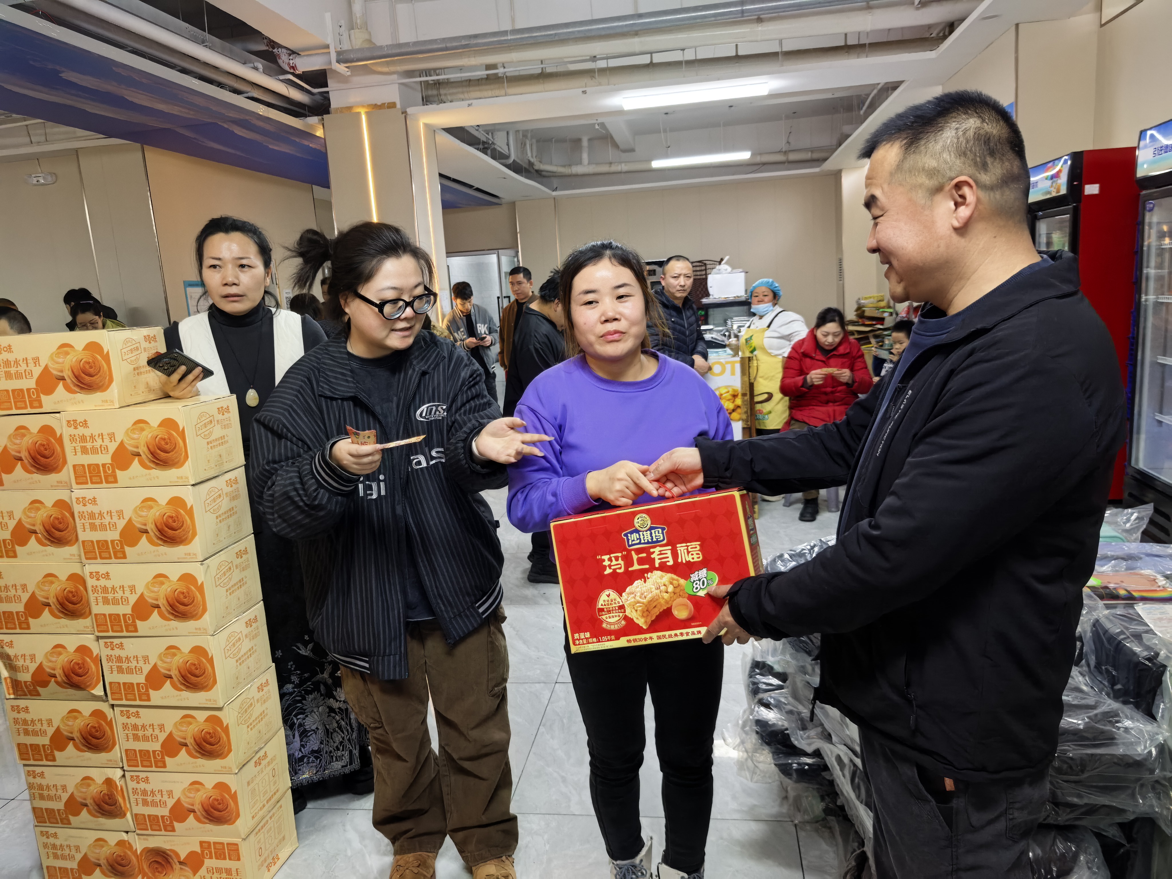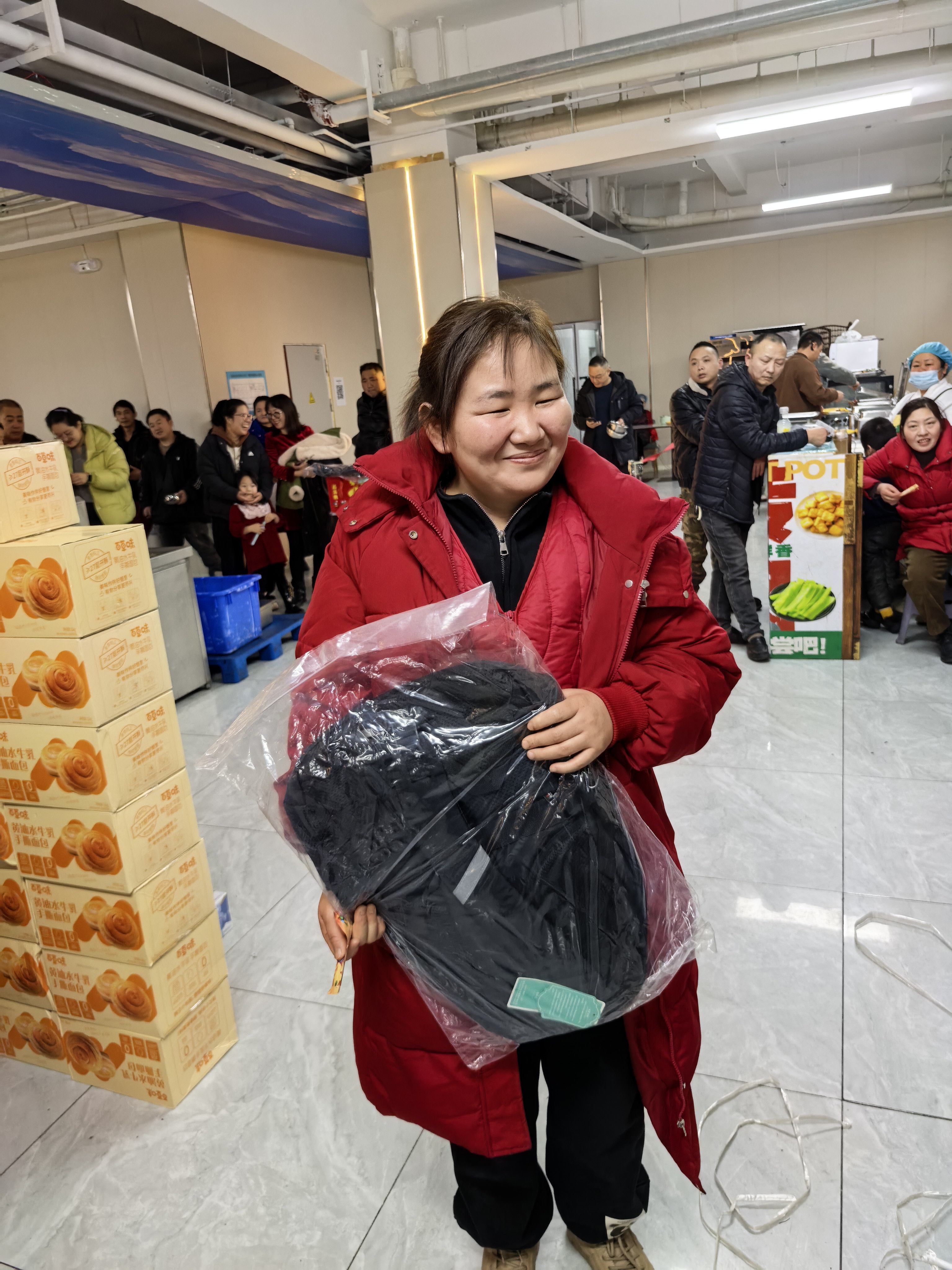 本次抽奖奖项丰厚、品类多样,覆盖全体员工,真正实现人人有礼、喜乐共享:三等奖为实用保温杯,为冬日增添温暖;二等奖为各类精选礼盒,包含美味食品与暖心好物;一等奖为时尚双肩书包,兼顾通勤与出行实用需求;特等奖为 24 寸可扩容时尚皮箱,承载美好期许与全新梦想。除此之外,未抽中奖项的员工均可领取专属手撕面包,让每一位同仁都满载而归、不虚此行。