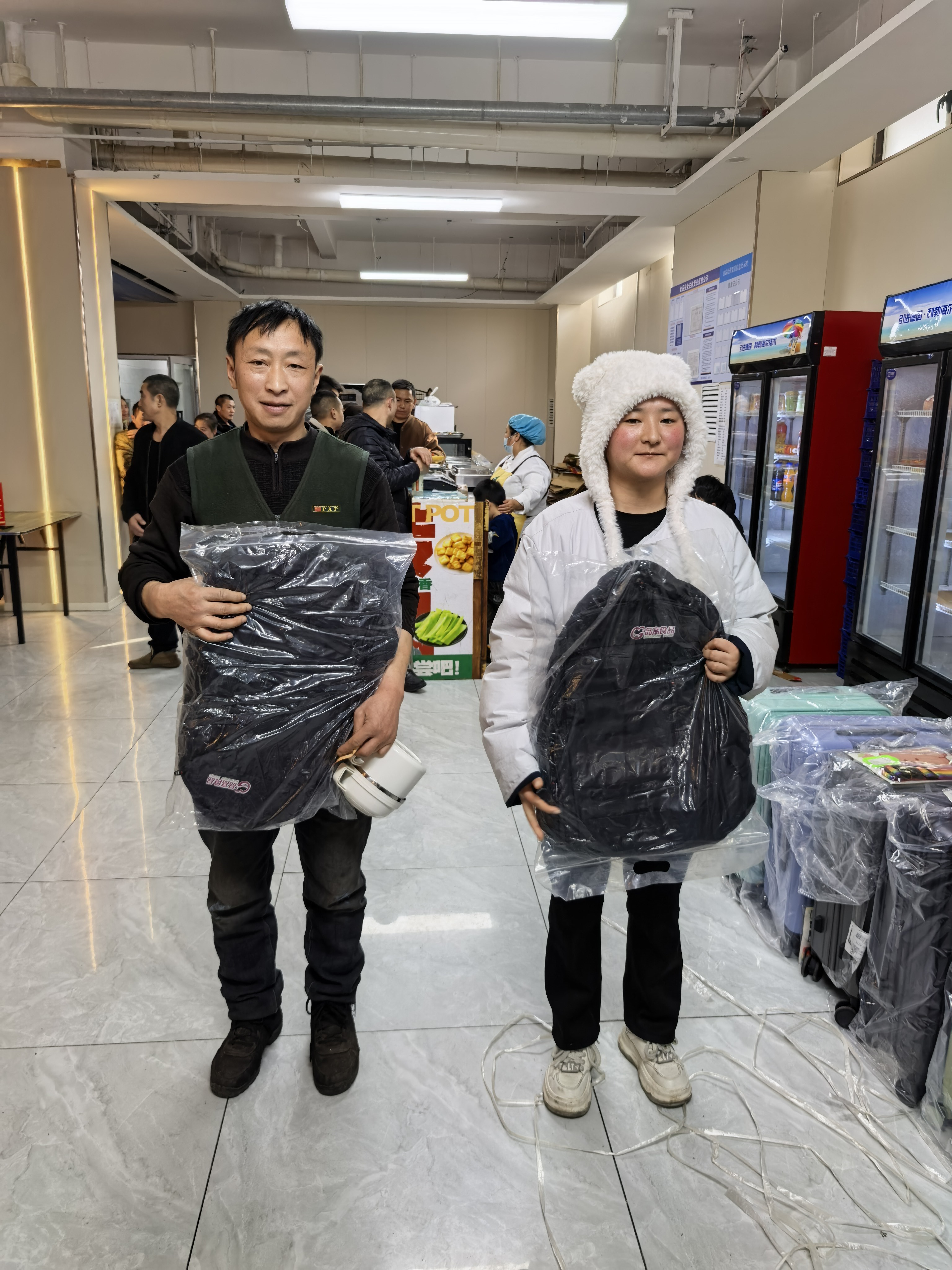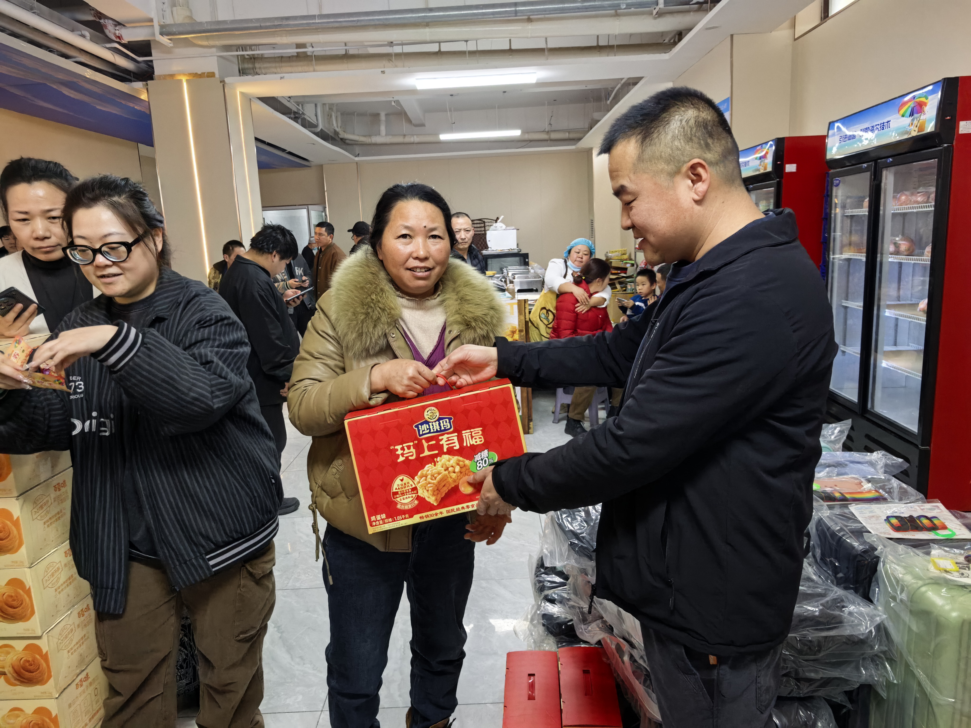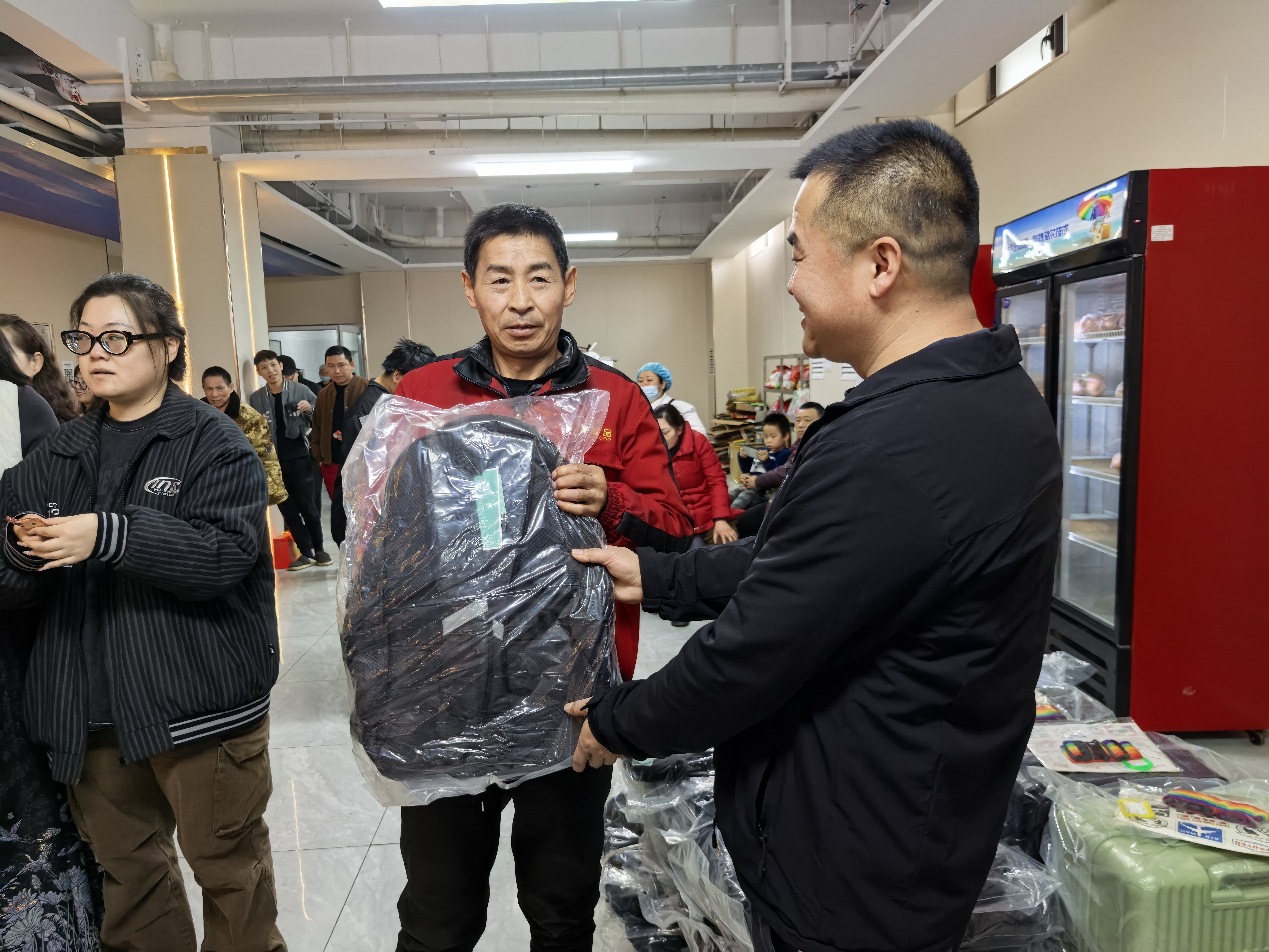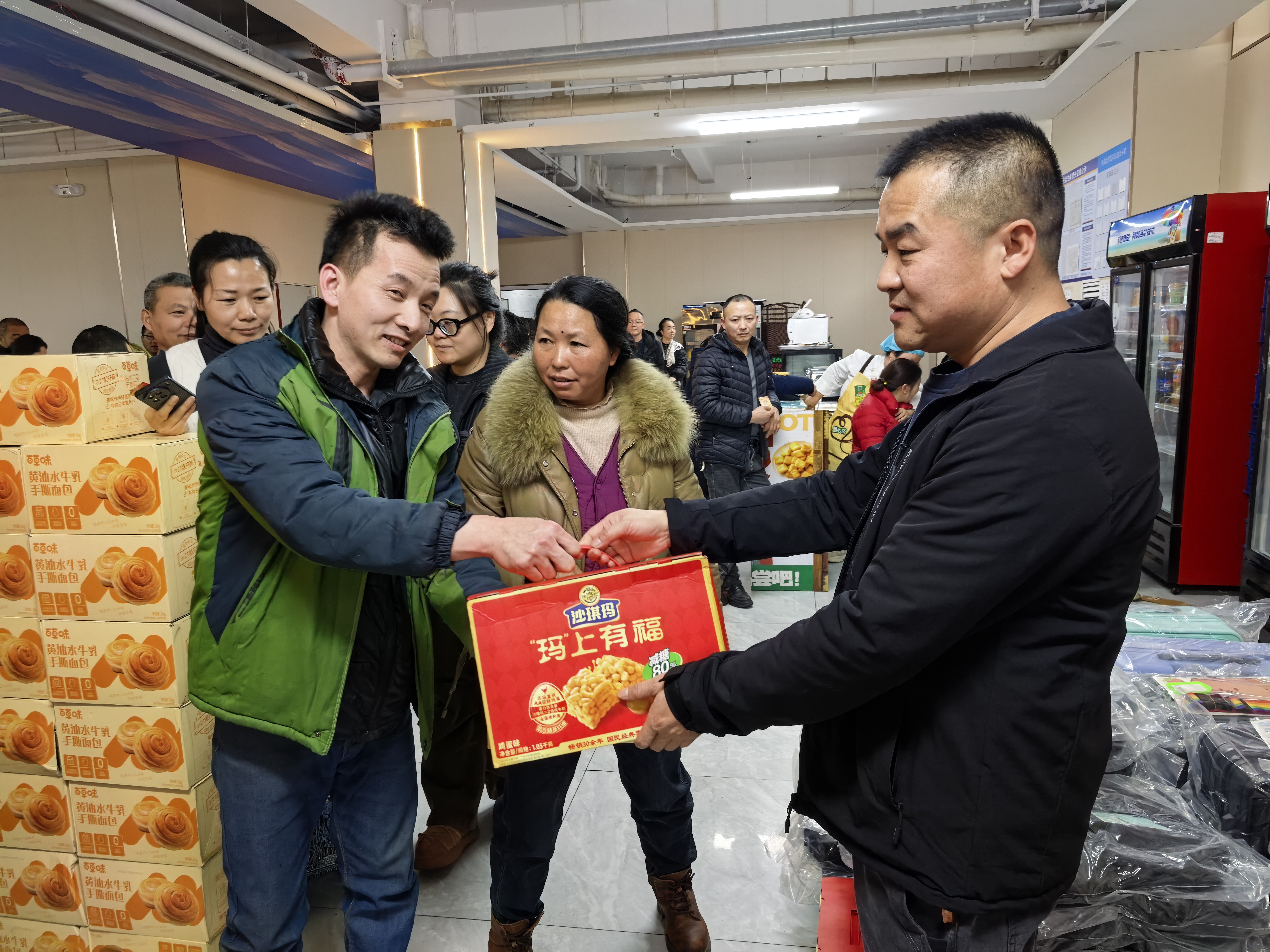 本次抽奖奖项丰厚、品类多样,覆盖全体员工,真正实现人人有礼、喜乐共享:三等奖为实用保温杯,为冬日增添温暖;二等奖为各类精选礼盒,包含美味食品与暖心好物;一等奖为时尚双肩书包,兼顾通勤与出行实用需求;特等奖为 24 寸可扩容时尚皮箱,承载美好期许与全新梦想。除此之外,未抽中奖项的员工均可领取专属手撕面包,让每一位同仁都满载而归、不虚此行。